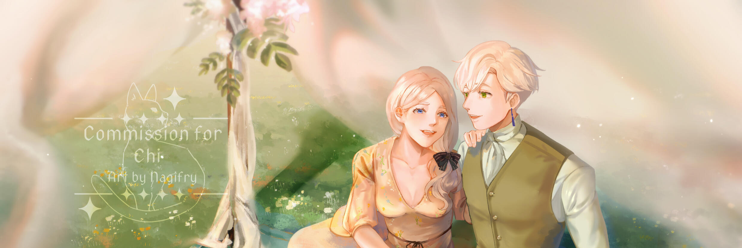 ⬥ Custom painting curated and painted with the utmost care for yours truly. My specialty lies on romance, whimsical adventure, melancholic narratives and character interactions.⬥ You may choose between painting or lineart style. Whereas painting is my primary focus, lineart style fits perfectly if you're looking for a clean, visual novel style artwork!⬥ Canvas Size: A5 (14.8 cm x 21 cm), 300 dpi. May be adjusted upon request.⬥ Please contact the artist for commercial pricing, for instance regarding streaming illustration.